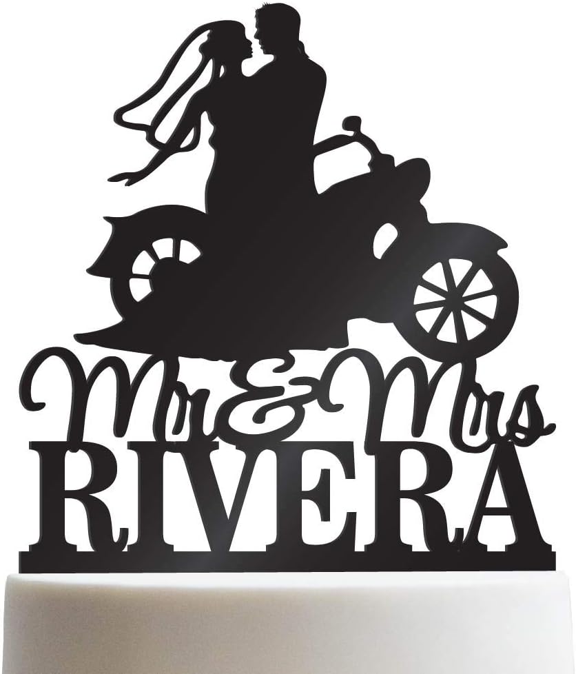 Amazon Com Bride Groom Riding A Motorcycle Chopper Hd Bike Mr Mrs Biker Personalized Wedding Cake Topper Customized Last Name Solid Color Cake Toppers Kitchen Dining