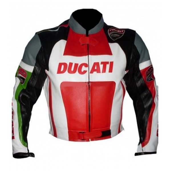 Ducati Red And White Biker Style Leather Jacket Jackleathers
